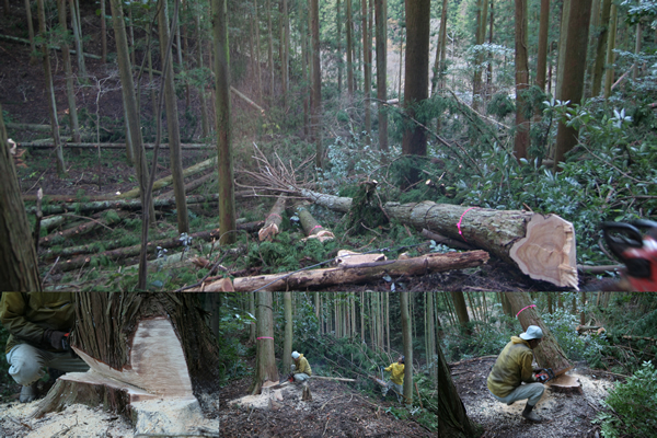 この山より檜、杉を切り出し、僧堂を建設する。以前に使用され、保管されていた木材も合せて使用するので、寸法を取り、調査を行う。