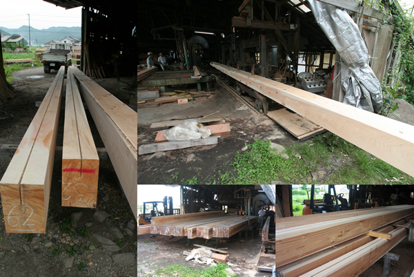 丸太から一度、角材にして乾燥した後、最終的に設計寸法に挽き直しする。